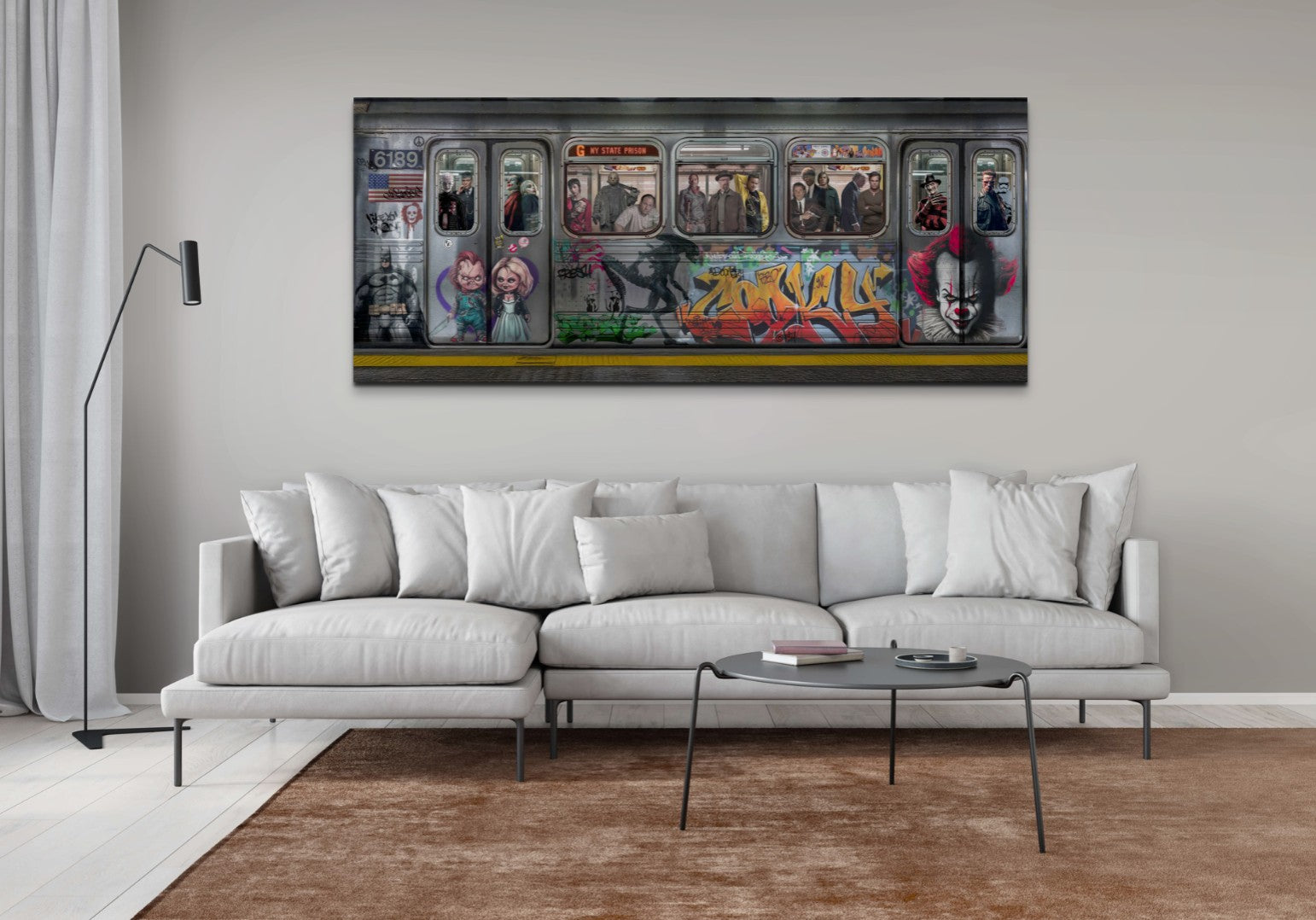 In dit kunstwerk wordt een metrowagon omgetoverd tot een rijdend spektakel vol iconische film-, muziek- en popcultuurfiguren. De graffiti en details op de buitenkant versterken de rauwe, urban sfeer, terwijl de mix van legendes de grens tussen fictie en realiteit vervaagt. Met Looney Island als eindbestemming is deze rit een chaotische samensmelting van humor, spanning en nostalgie.